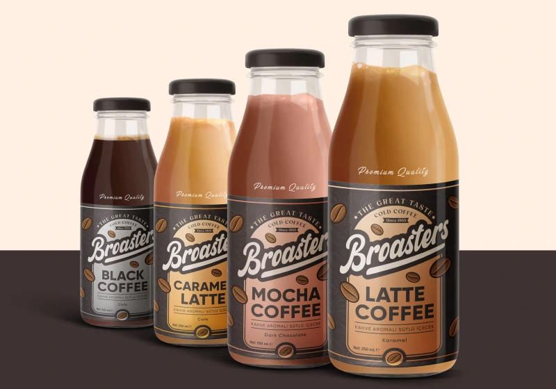 Bu projede, Broasters kahve markası için dört farklı cam şişe ambalaj tasarımı hazırladım. Her bir tasarım, markanın modern ve kaliteli kahve anlayışını yansıtarak, görsel olarak dikkat çekici ve fonksiyonel bir bütün oluşturmayı amaçladı. Cam şişe formu doğallığı ve şıklığı simgelerken aynı zamanda markanın premium imajını pekiştiriyor.